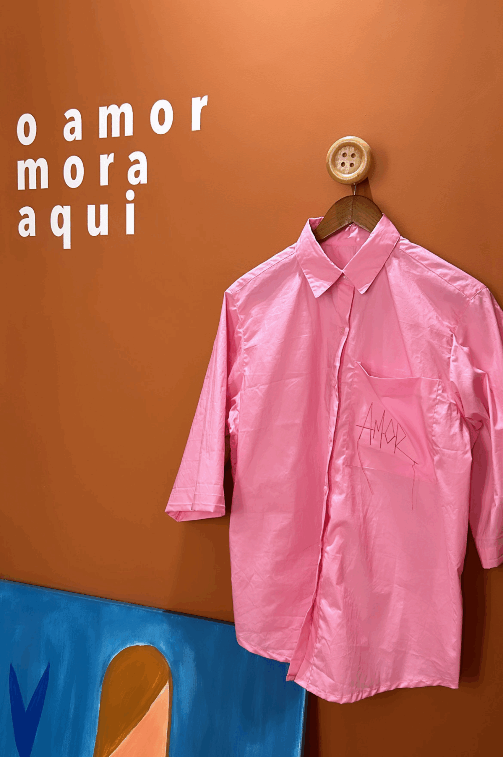 Camisão em tricoline de algodão e bordado AMOR no bolso.