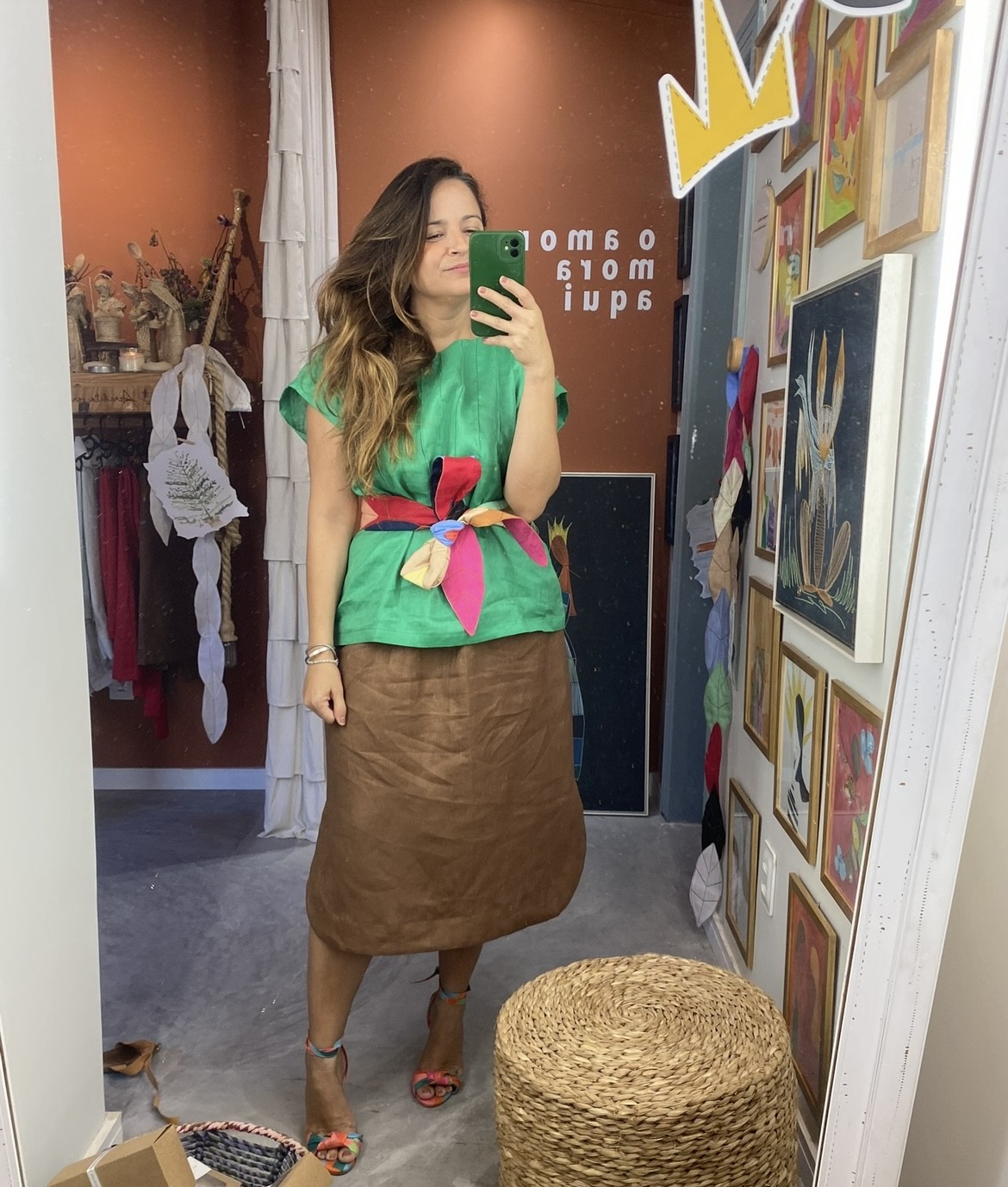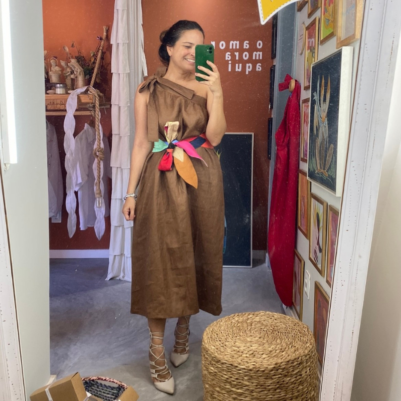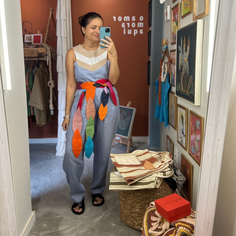 A peça mais amada do ateliê. Feita artesanalmente toda em linho puro, com composição de cores minuciosamente escolhidas, respeitando o contraste entre elas para que sejam visualmente atraentes, funcionais e que transmitam a mensagem desejada. Faz toda diferença no seu look.